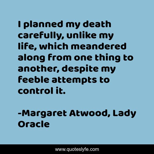 "Margaret Atwood, Lady Oracle Quotes." Quoteslyfe.com, 2025. Fri. 05 Dec. 2025. <https://www.quoteslyfe.com/quote/I-planned-my-death-carefully-unlike-my-20867>.