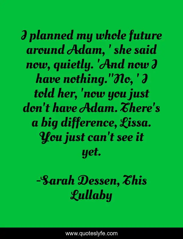 "Sarah Dessen, This Lullaby Quotes." Quoteslyfe.com, 2025. Sun. 07 Dec. 2025. <https://www.quoteslyfe.com/quote/I-planned-my-whole-future-around-Adam-256557>.