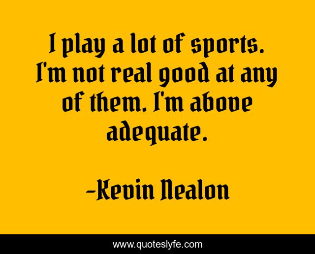 This page presents the quote "I play a lot of sports. I'm not real good at any of them. I'm above adequate.". Author of this quote is Kevin Nealon. This quote is about real, play, good,.