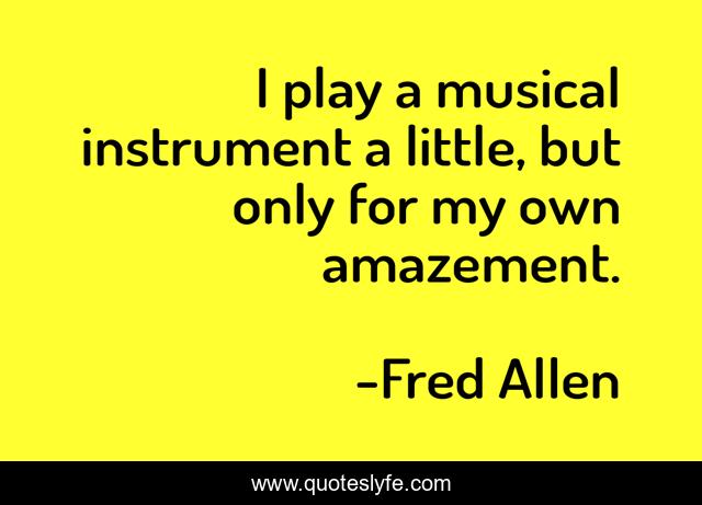 This page presents the quote "I play a musical instrument a little, but only for my own amazement.". Author of this quote is Fred Allen. This quote is about play, my own, little,.