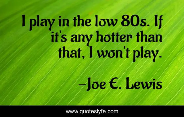 This page presents the quote "I play in the low 80s. If it's any hotter than that, I won't play.". Author of this quote is Joe E. Lewis. This quote is about play, low,.