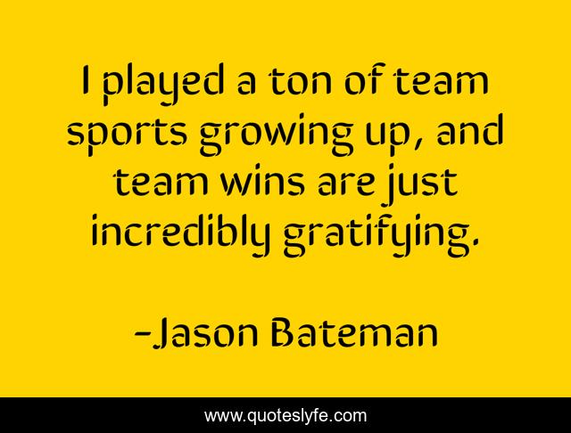 This page presents the quote "I played a ton of team sports growing up, and team wins are just incredibly gratifying.". Author of this quote is Jason Bateman. This quote is about growing, growing up, team,.