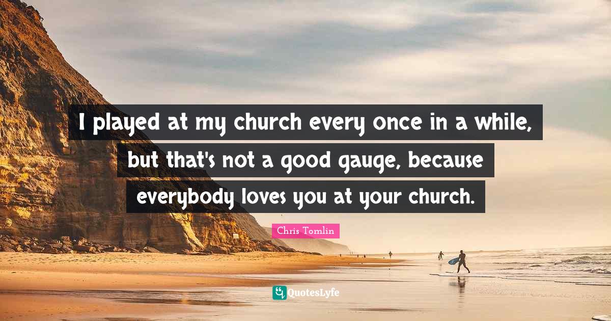 This page presents the quote "I played at my church every once in a while, but that's not a good gauge, because everybody loves you at your church.". Author of this quote is Chris Tomlin. This quote is about gauges, church, love you,.