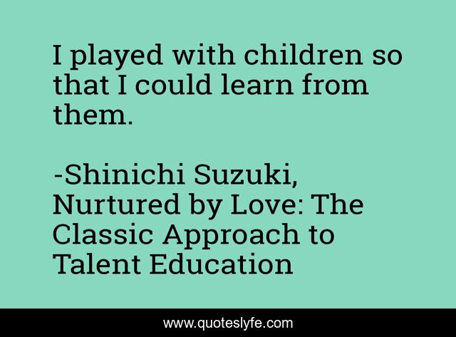 "Shinichi Suzuki, Nurtured by Love: The Classic Approach to Talent Education Quotes." Quoteslyfe.com, 2025. Fri. 05 Dec. 2025. <https://www.quoteslyfe.com/quote/I-played-with-children-so-that-I-100327>.