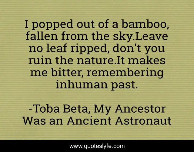 "Toba Beta, My Ancestor Was an Ancient Astronaut Quotes." Quoteslyfe.com, 2025. Fri. 05 Dec. 2025. <https://www.quoteslyfe.com/quote/I-popped-out-of-a-bamboo-fallen-199503>.