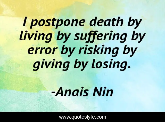 "Anais Nin Quotes." Quoteslyfe.com, 2025. Sat. 06 Dec. 2025. <https://www.quoteslyfe.com/quote/I-postpone-death-by-living-by-suffering-275187>.