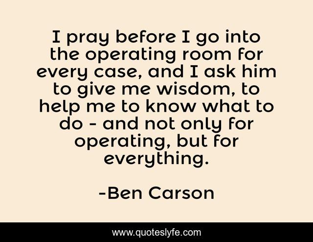 This page presents the quote "I pray before I go into the operating room for every case, and I ask him to give me wisdom, to help me to know what to do - and not only for operating, but for everything.". Author of this quote is Ben Carson. This quote is about me, help,.
