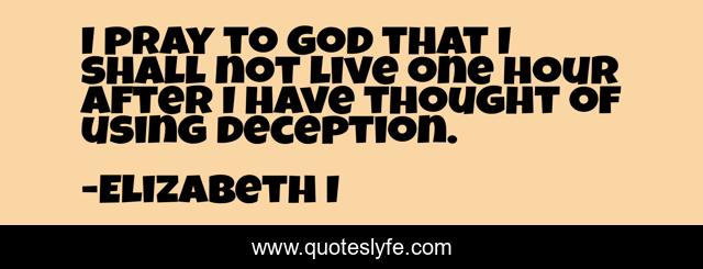This page presents the quote "I pray to God that I shall not live one hour after I have thought of using deception.". Author of this quote is Elizabeth I. This quote is about thought, live, deception,.