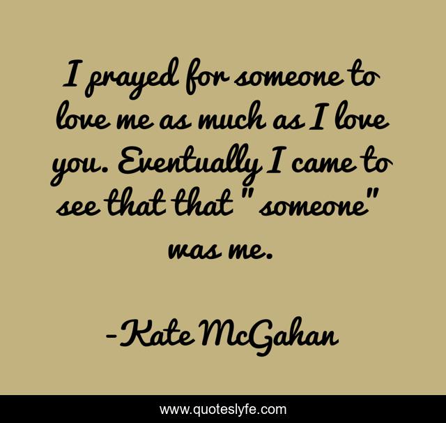 This page presents the quote "I prayed for someone to love me as much as I love you. Eventually I came to see that that "someone" was me.". Author of this quote is Kate McGahan. This quote is about self-love, love, affection, prayer,.