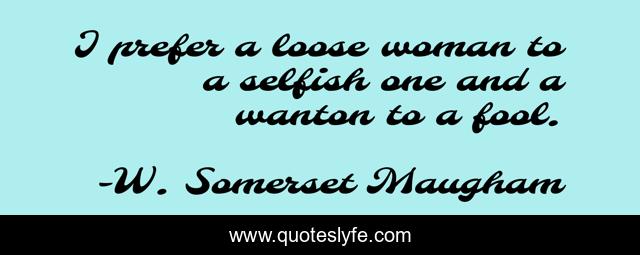 This page presents the quote "I prefer a loose woman to a selfish one and a wanton to a fool.". Author of this quote is W. Somerset Maugham. .