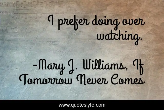 "Mary J. Williams, If Tomorrow Never Comes Quotes." Quoteslyfe.com, 2025. Sat. 06 Dec. 2025. <https://www.quoteslyfe.com/quote/I-prefer-doing-over-watching-154946>.