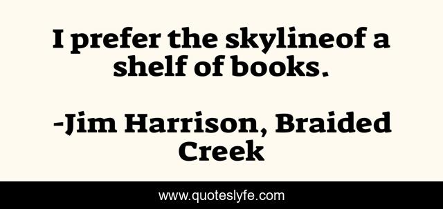 "Jim Harrison, Braided Creek Quotes." Quoteslyfe.com, 2025. Sat. 06 Dec. 2025. <https://www.quoteslyfe.com/quote/I-prefer-the-skylineof-a-shelf-of-67020>.