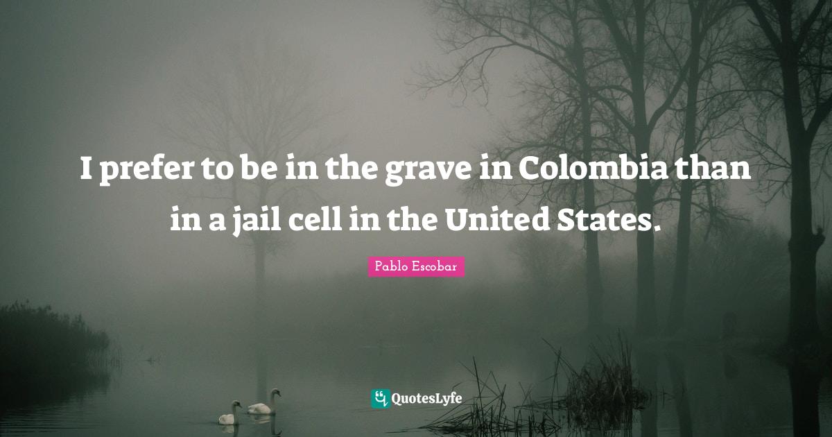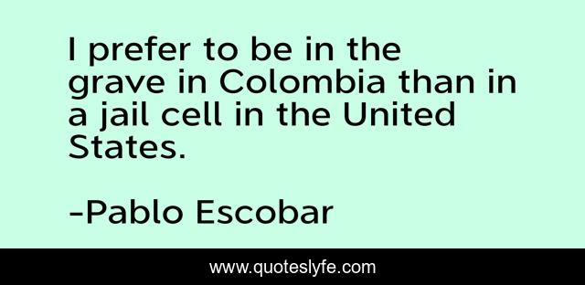 This page presents the quote "I prefer to be in the grave in Colombia than in a jail cell in the United States.". Author of this quote is Pablo Escobar. This quote is about drugs, real-world, drug-lor, inspirational, enthusiasm,.