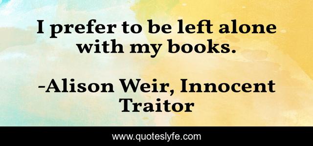 This page presents the quote "I prefer to be left alone with my books.". Author of this quote is Alison Weir, Innocent Traitor. This quote is about book-lover, solitude, jane-grey,.
