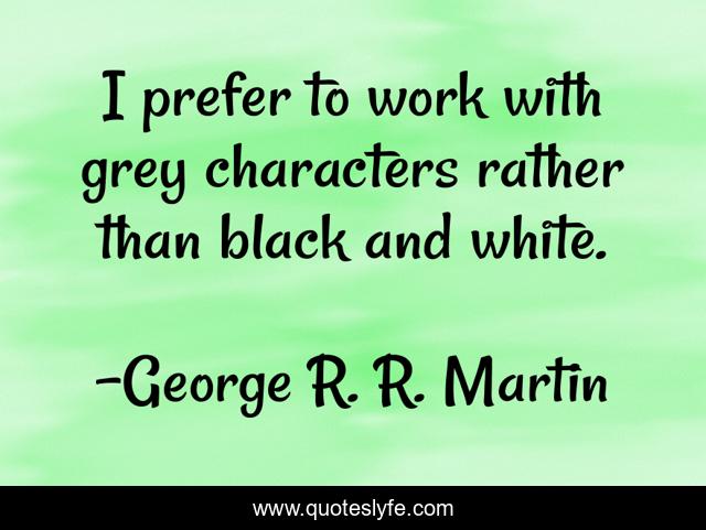 This page presents the quote "I prefer to work with grey characters rather than black and white.". Author of this quote is George R. R. Martin. This quote is about black, grey, black and white,.