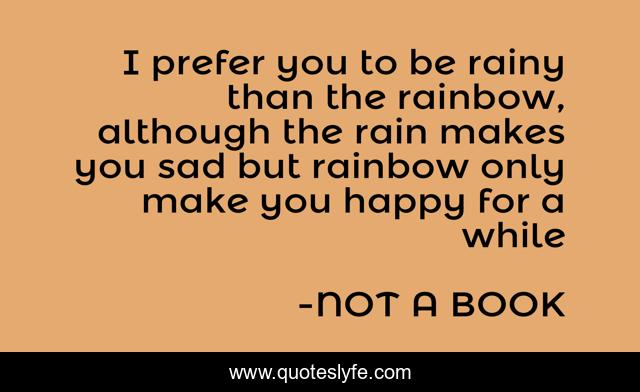 This page presents the quote "I prefer you to be rainy than the rainbow, although the rain makes you sad but rainbow only make you happy for a while". Author of this quote is NOT A BOOK. This quote is about love, affection,.