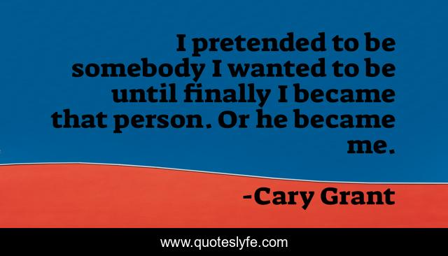 This page presents the quote "I pretended to be somebody I wanted to be until finally I became that person. Or he became me.". Author of this quote is Cary Grant. This quote is about me, person, somebody,.