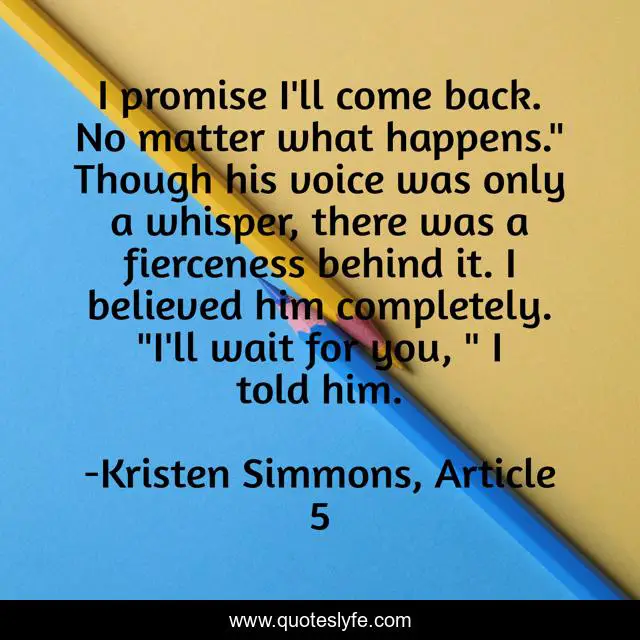 "Kristen Simmons, Article 5 Quotes." Quoteslyfe.com, 2025. Mon. 08 Dec. 2025. <https://www.quoteslyfe.com/quote/I-promise-I-ll-come-back-No-188723>.