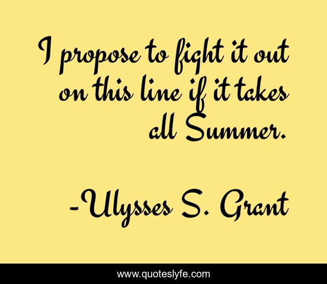 This page presents the quote "I propose to fight it out on this line if it takes all Summer.". Author of this quote is Ulysses S. Grant. .
