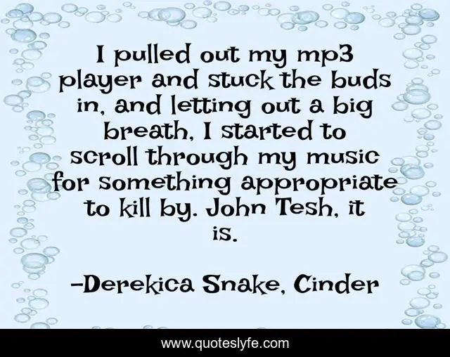 "Derekica Snake, Cinder Quotes." Quoteslyfe.com, 2025. Fri. 05 Dec. 2025. <https://www.quoteslyfe.com/quote/I-pulled-out-my-mp3-player-and-202697>.