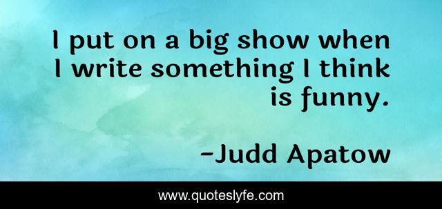 This page presents the quote "I put on a big show when I write something I think is funny.". Author of this quote is Judd Apatow. This quote is about big, think, show,.