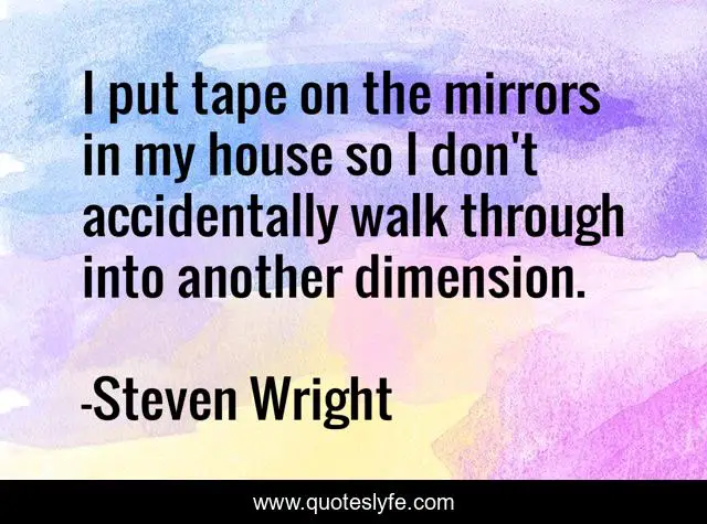 This page presents the quote "I put tape on the mirrors in my house so I don't accidentally walk through into another dimension.". Author of this quote is Steven Wright. This quote is about humor, sci-fi, sf,.