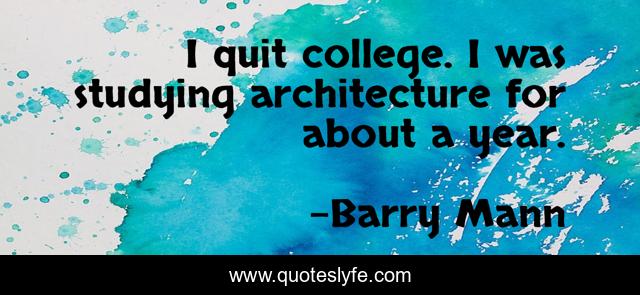 This page presents the quote "I quit college. I was studying architecture for about a year.". Author of this quote is Barry Mann. This quote is about studying, college, quit,.