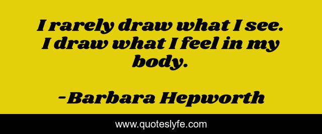 This page presents the quote "I rarely draw what I see. I draw what I feel in my body.". Author of this quote is Barbara Hepworth. This quote is about body, feel, see,.