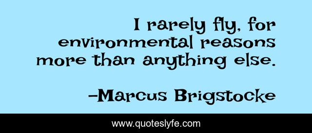 This page presents the quote "I rarely fly, for environmental reasons more than anything else.". Author of this quote is Marcus Brigstocke. This quote is about fly, reasons, anything,.