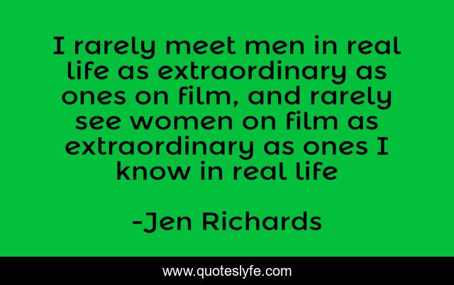 This page presents the quote "I rarely meet men in real life as extraordinary as ones on film, and rarely see women on film as extraordinary as ones I know in real life". Author of this quote is Jen Richards. This quote is about women-are-awesome, feminist,.