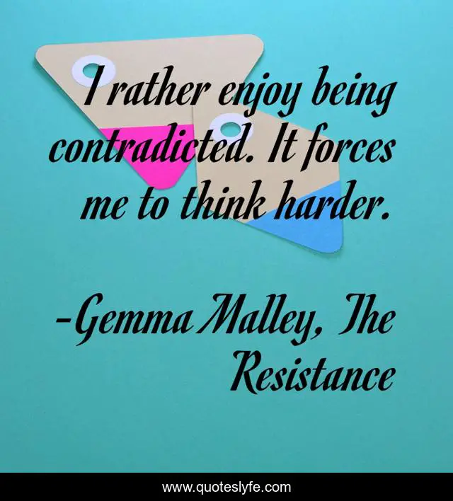 "Gemma Malley, The Resistance Quotes." Quoteslyfe.com, 2025. Fri. 05 Dec. 2025. <https://www.quoteslyfe.com/quote/I-rather-enjoy-being-contradicted-It-forces-163052>.