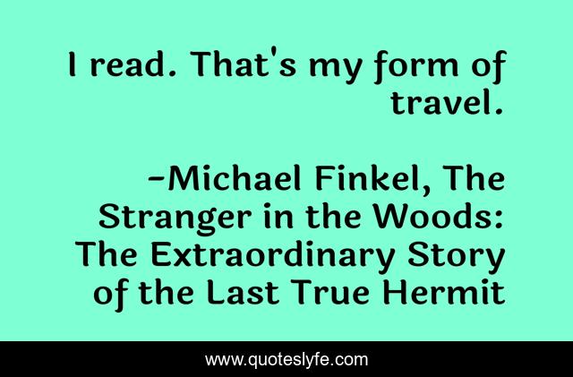 "Michael Finkel, The Stranger in the Woods: The Extraordinary Story of the Last True Hermit Quotes." Quoteslyfe.com, 2025. Fri. 05 Dec. 2025. <https://www.quoteslyfe.com/quote/I-read-That-s-my-form-of-66803>.