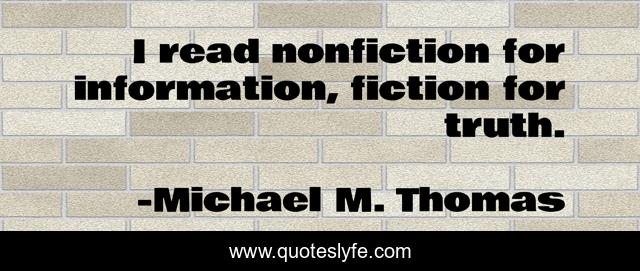"Michael M. Thomas Quotes." Quoteslyfe.com, 2025. Mon. 08 Dec. 2025. <https://www.quoteslyfe.com/quote/I-read-nonfiction-for-information-fiction-for-67076>.