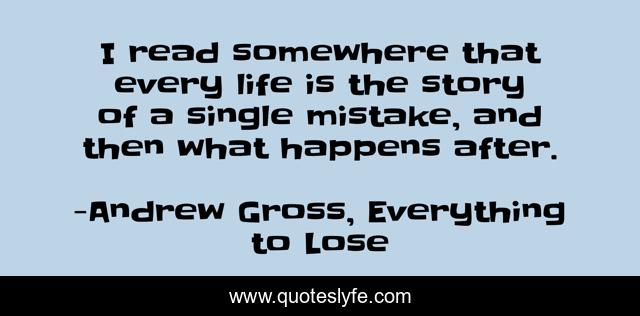 This page presents the quote "I read somewhere that every life is the story of a single mistake, and then what happens after.". Author of this quote is Andrew Gross, Everything to Lose. This quote is about life-experience, truth,.