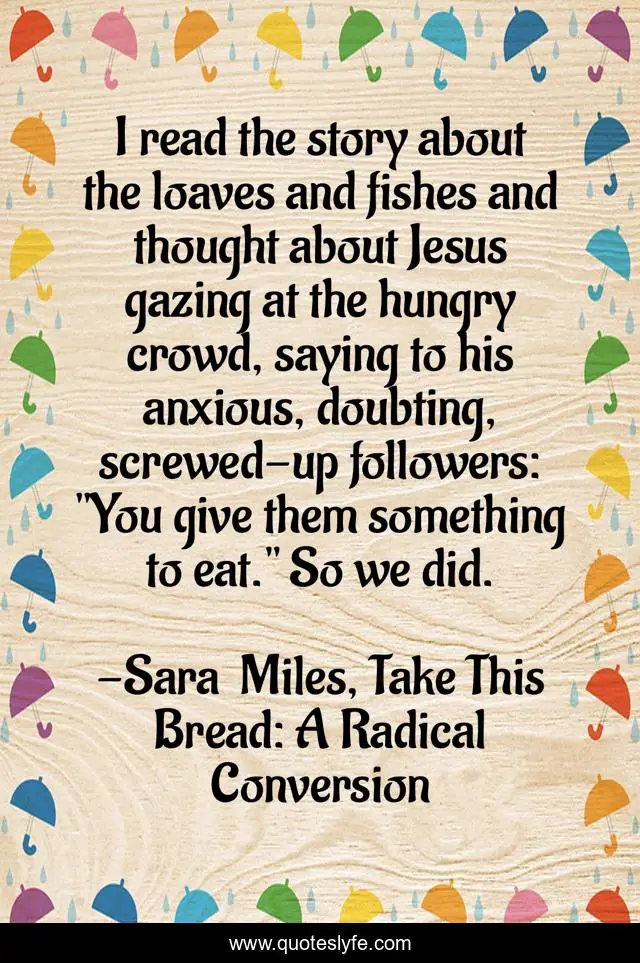 "Sara Miles, Take This Bread: A Radical Conversion Quotes." Quoteslyfe.com, 2025. Fri. 05 Dec. 2025. <https://www.quoteslyfe.com/quote/I-read-the-story-about-the-loaves-62118>.