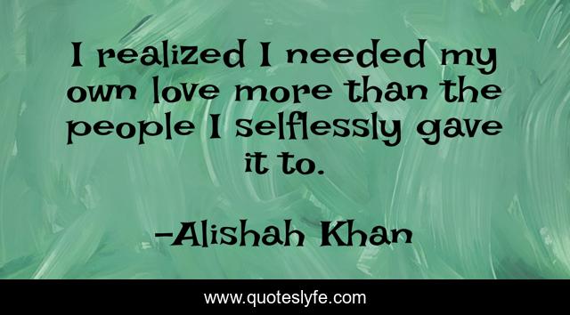 "Alishah Khan Quotes." Quoteslyfe.com, 2025. Fri. 05 Dec. 2025. <https://www.quoteslyfe.com/quote/I-realized-I-needed-my-own-love-211829>.