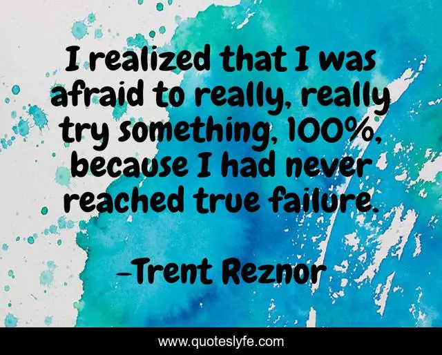 This page presents the quote "I realized that I was afraid to really, really try something, 100%, because I had never reached true failure.". Author of this quote is Trent Reznor. This quote is about try, true,.