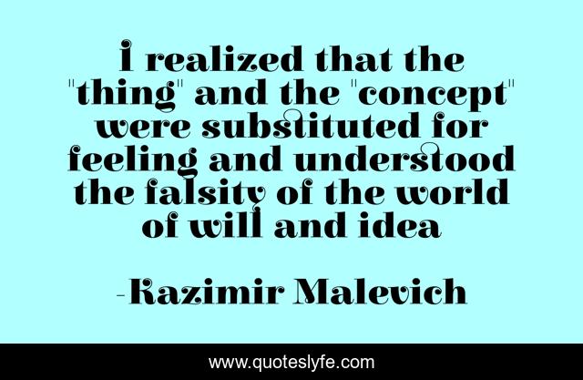 This page presents the quote "I realized that the "thing" and the "concept" were substituted for feeling and understood the falsity of the world of will and idea". Author of this quote is Kazimir Malevich. .
