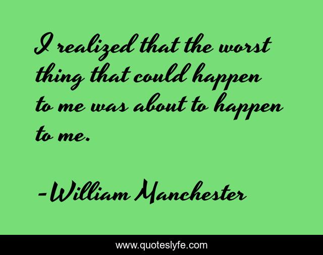 This page presents the quote "I realized that the worst thing that could happen to me was about to happen to me.". Author of this quote is William Manchester. This quote is about fear, courage, life, fate, war,.