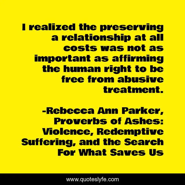 "Rebecca Ann Parker, Proverbs of Ashes: Violence, Redemptive Suffering, and the Search For What Saves Us Quotes." Quoteslyfe.com, 2025. Fri. 05 Dec. 2025. <https://www.quoteslyfe.com/quote/I-realized-the-preserving-a-relationship-at-210242>.