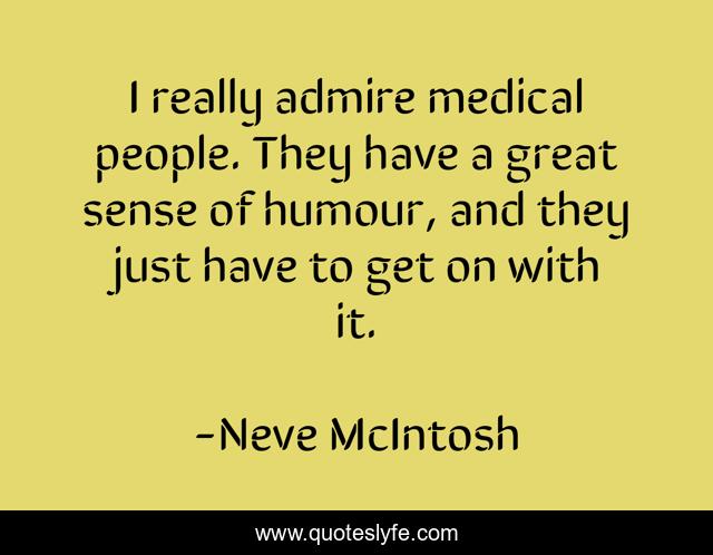 This page presents the quote "I really admire medical people. They have a great sense of humour, and they just have to get on with it.". Author of this quote is Neve McIntosh. This quote is about admire, great, people,.