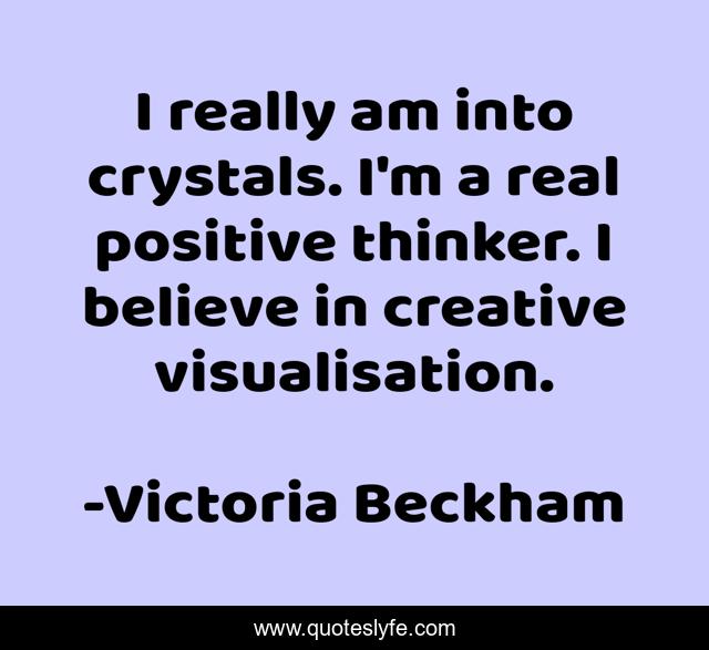 This page presents the quote "I really am into crystals. I'm a real positive thinker. I believe in creative visualisation.". Author of this quote is Victoria Beckham. This quote is about i believe, believe, creative,.