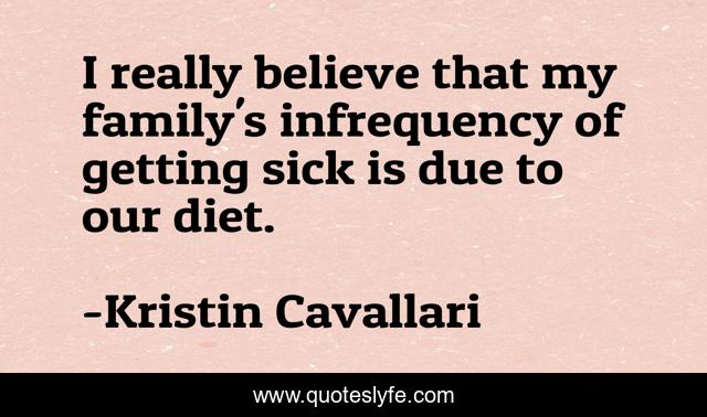 This page presents the quote "I really believe that my family's infrequency of getting sick is due to our diet.". Author of this quote is Kristin Cavallari. This quote is about believe, family, sick,.