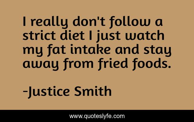 This page presents the quote "I really don't follow a strict diet I just watch my fat intake and stay away from fried foods.". Author of this quote is Justice Smith. This quote is about follow, watch, fat,.