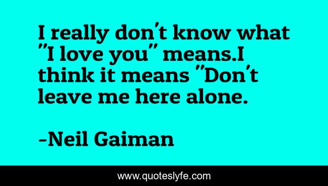 This page presents the quote "I really don't know what "I love you" means.I think it means "Don't leave me here alone.". Author of this quote is Neil Gaiman. This quote is about love, poetry, affection,.
