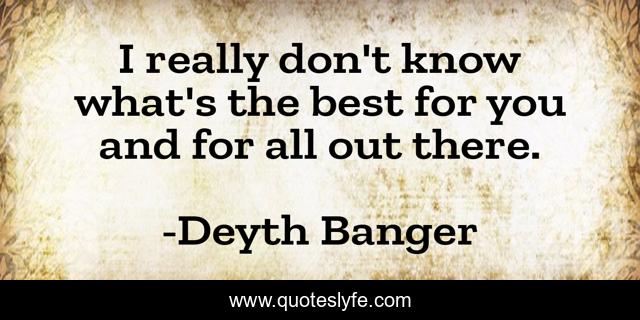 This page presents the quote "I really don't know what's the best for you and for all out there.". Author of this quote is Deyth Banger. This quote is about bests, really,.