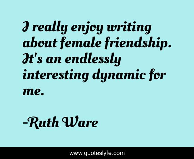 This page presents the quote "I really enjoy writing about female friendship. It's an endlessly interesting dynamic for me.". Author of this quote is Ruth Ware. This quote is about me, enjoy, writing,.