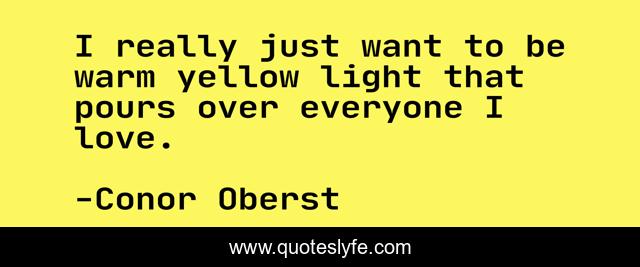 This page presents the quote "I really just want to be warm yellow light that pours over everyone I love.". Author of this quote is Conor Oberst. This quote is about light, yellow,.