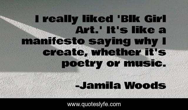 This page presents the quote "I really liked 'Blk Girl Art.' It's like a manifesto saying why I create, whether it's poetry or music.". Author of this quote is Jamila Woods. This quote is about music, girl, art,.