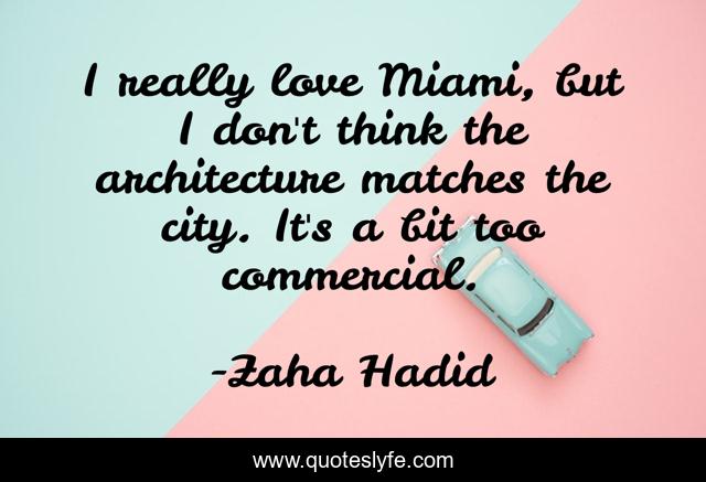 This page presents the quote "I really love Miami, but I don't think the architecture matches the city. It's a bit too commercial.". Author of this quote is Zaha Hadid. This quote is about city, love, think, affection,.